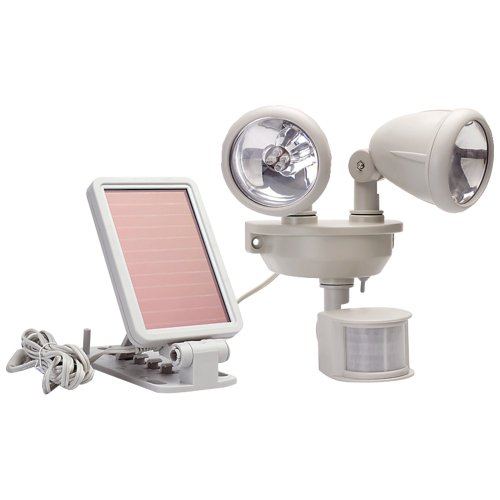 | This is one of the brightest solar-powered, motion-activated outdoor security spotlights on the market. Reposition the heads for wide illumination. The LEDs never burn out or need changing. This unit ensures that you always have bright light without using one bit of electricity, drawing the free power of the sun. This means low energy costs and low environmental impact with an amazing amount of light. Installation is so simple, no electrician needed. ...Read more |